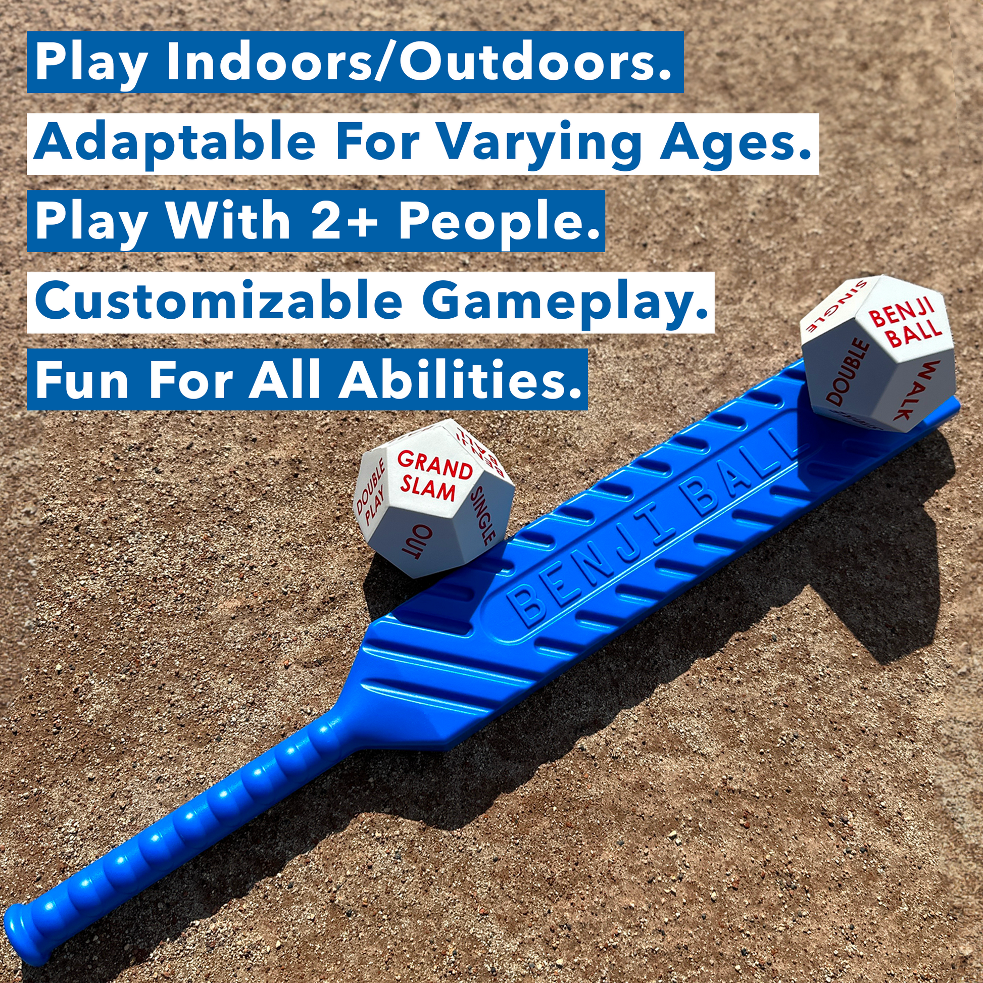 Split into teams. Determine what the Benji Ball (Wildcard) sides of the ball mean. One person from each team rolls the ball, the team who rolls the best outcome gets to choose if they hit or field first.